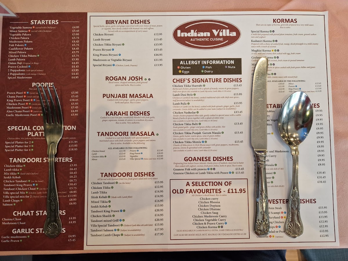 Indian Villa Restaurant Menu